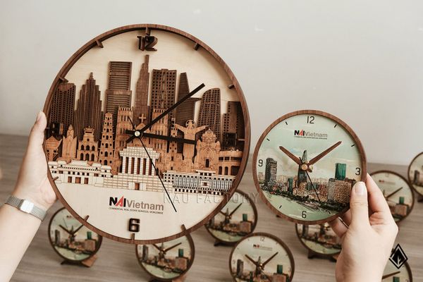 Đồng hồ gỗ để bàn | In UV logo theo yêu cầu