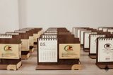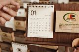 Lịch gỗ khay bút - In logo lên khay bút và tờ lịch theo yêu cầu