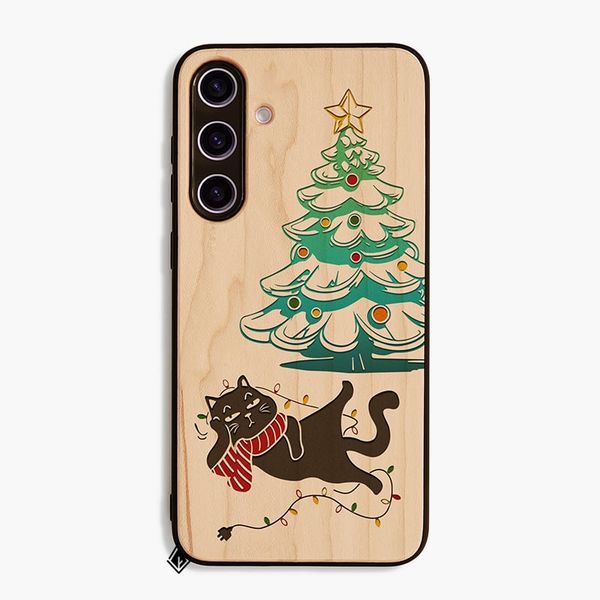 Mèo lười bên cây thông