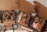 Mỗi chiếc móc khóa được đóng gói trong hộp giấy kraft, có lót cỏ khô mộc mạc với mùi thơm riêng biệt.