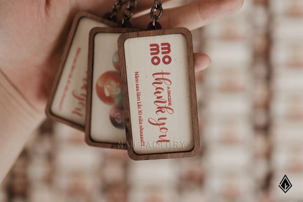 Móc khoá gỗ | In logo cho doanh nghiệp 2 mặt theo yêu cầu