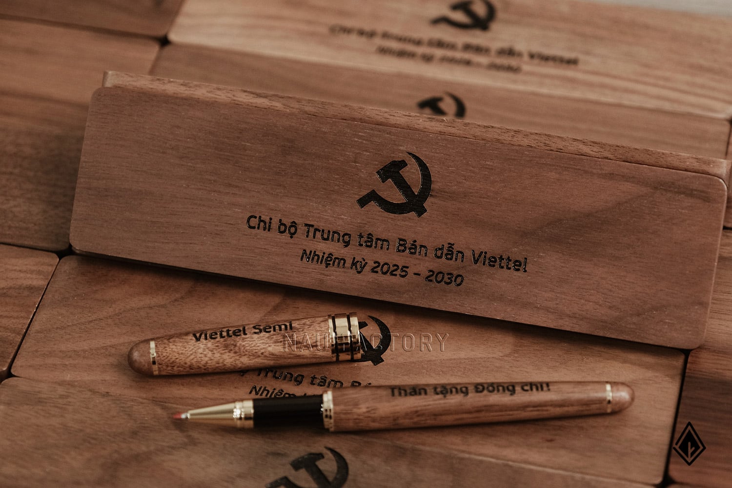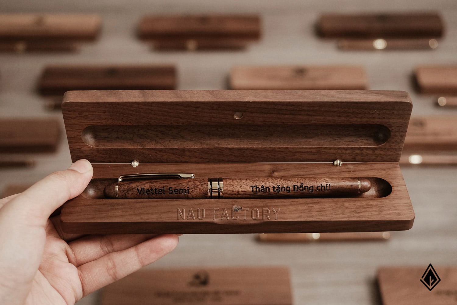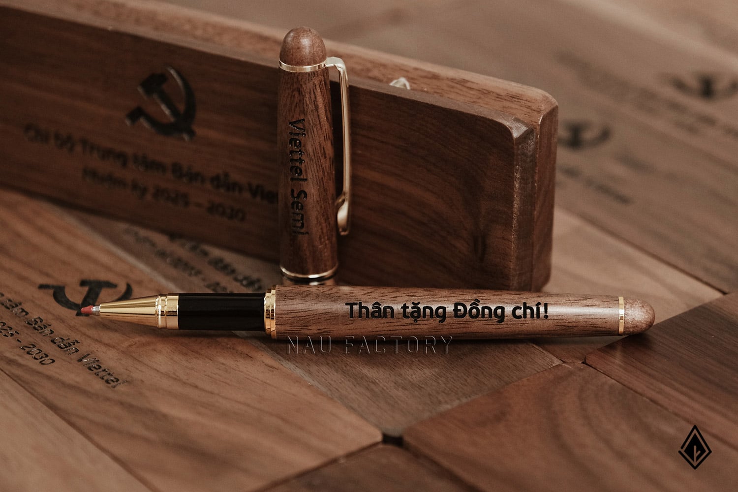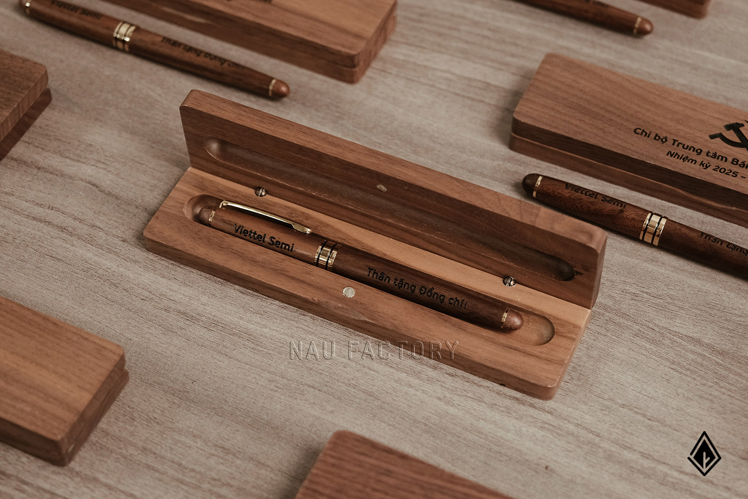 Set bút và hộp bút gỗ Walnut | Khắc laser theo yêu cầu